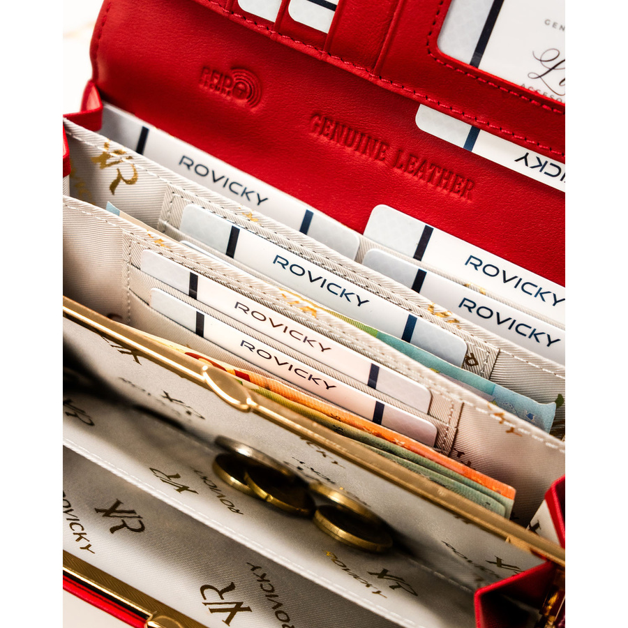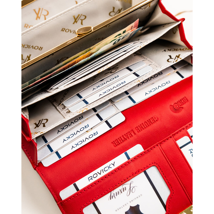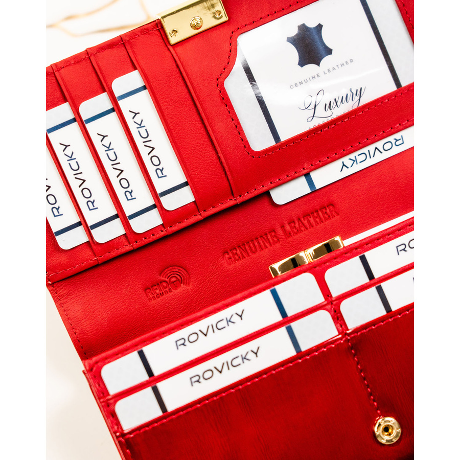 Duży, skórzany portfel damski w czerwonym kolorze - Rovicky