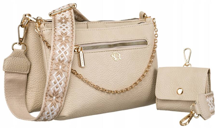 Wraz z torebką otrzymasz od nas odpinaną mini portmonetkę i odpinany ozdobny łańcuszek. Do portmonetki schowasz karty płatnicze, klucze, bilon lub inne małe przedmioty. Portmonetkę możesz zamontować za pomocą karabińczyka do paska na ramię lub bezpośrednio do torebki.
