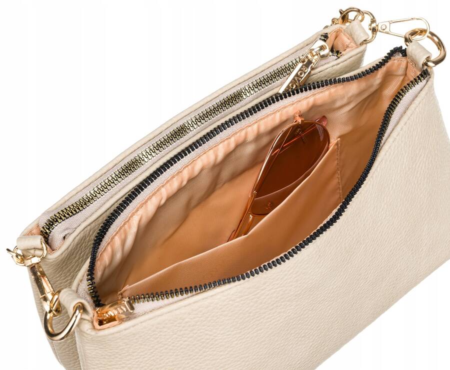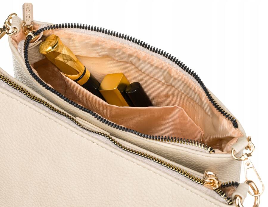 Podwójna torebka to praktyczny dodatek do różnych stylizacji. W zależności od tego ile potrzebujesz miejsca w torebce, możesz połączyć dwie torebki w jedną lub nosić je osobno.