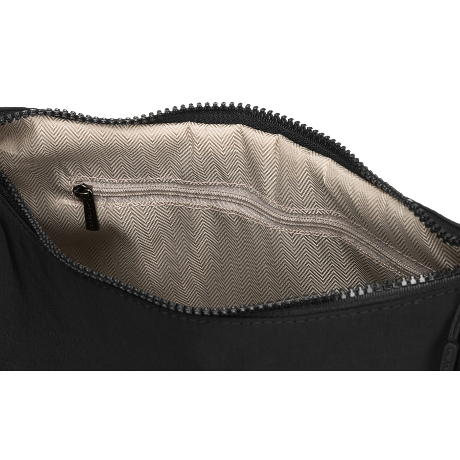 - Główna komora zapinana na suwak pomieści portfel, klucze, telefon, kosmetyki, a nawet niewielką książkę.