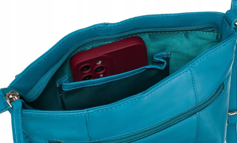 Torebka posiada 1 dużą komorę zamykaną na zamek błyskawiczny.