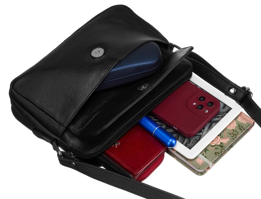 - Wnętrze | Jednokomorowa listonoszka na suwak, wyposażona w 3 dodatkowe kieszenie;