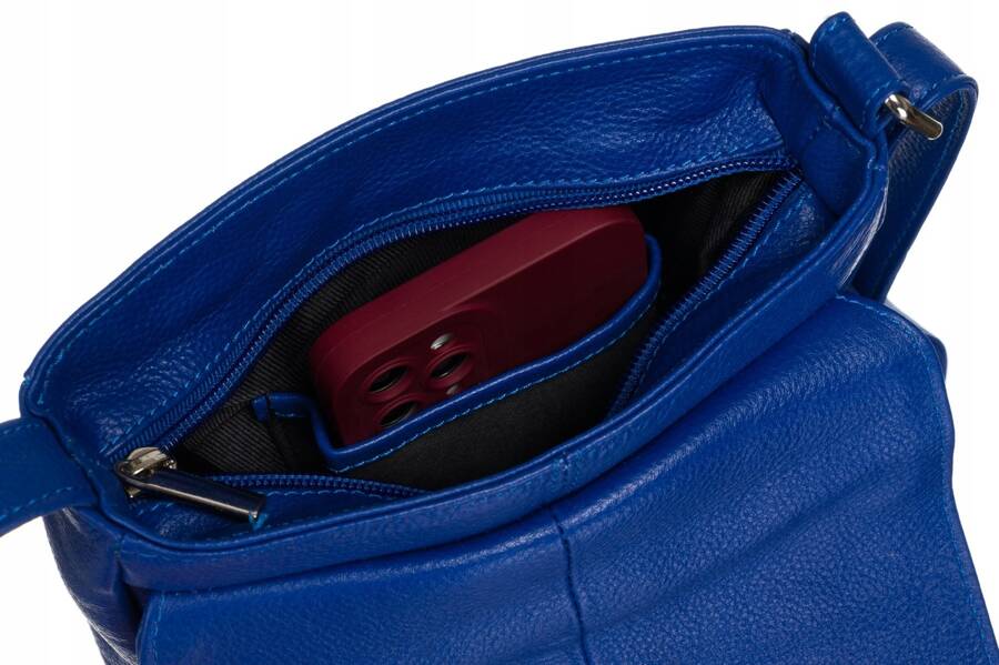 Dzięki starannie zaplanowanym przegrodom listonoszka pomieści wszystkie niezbędne rzeczy takie jak telefon, portfel czy klucze, zapewniając do nich łatwy dostęp.