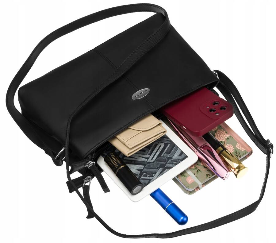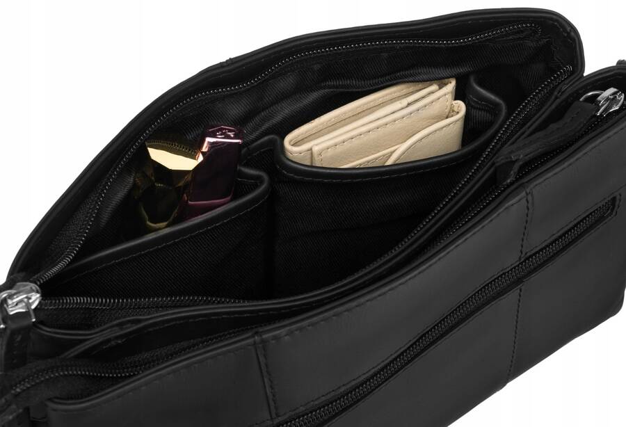 - Dwie komory | Torebka wyposażona w dwie komory z dodatkowymi kieszeniami;
