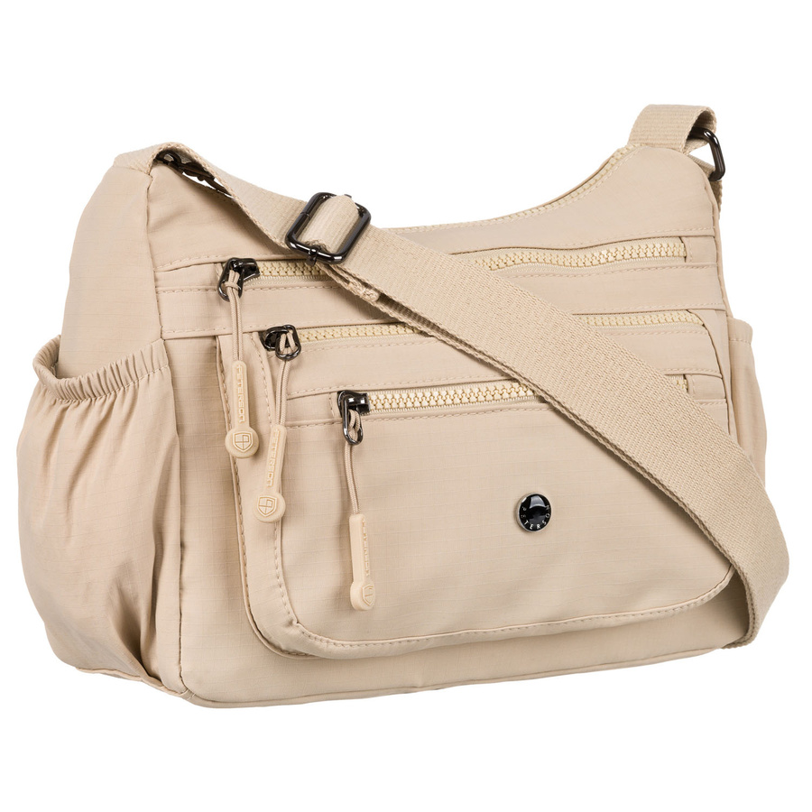 Miejska torebka damska w beżowym kolorze wykonana z poliestru - Peterson