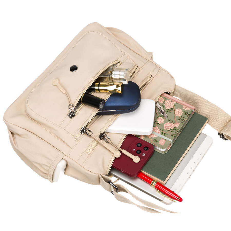 • Dzięki 6 praktycznym kieszeniom i dużej komorze głównej, każda rzecz ma swoje miejsce. Bez względu na to, czy nosisz telefon, portfel, kosmetyki, klucze czy notatnik, w tej torebce zawsze panuje porządek.