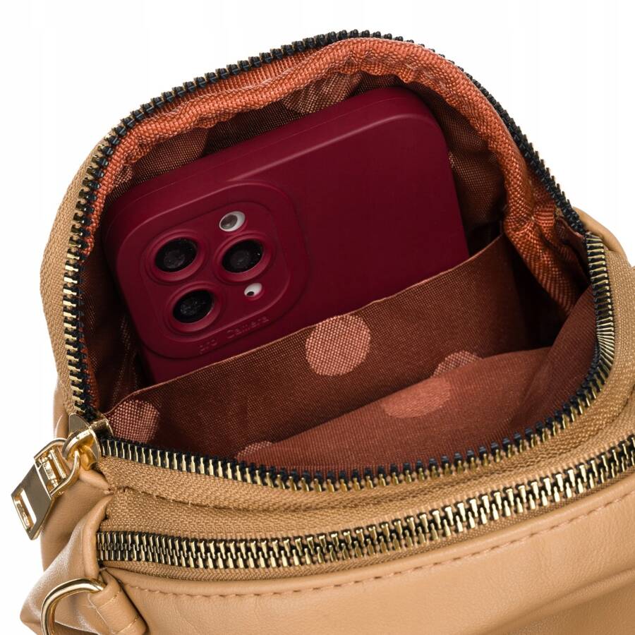 Mini torebka damska ze skóry ekologicznej w brązowym kolorze zawieszona na doczepianym pasku - Rovicky