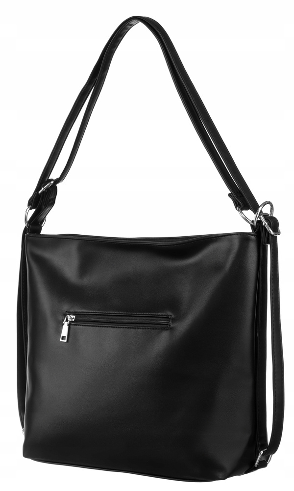 - 1 kieszeń zamykana na suwak na rewersie torebki.