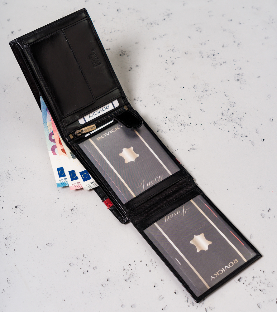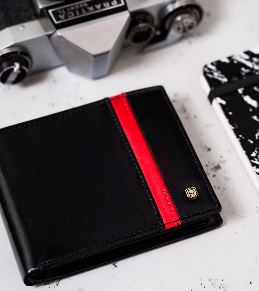 Skórzany portfel męski z czerwonym paskiem - Rovicky