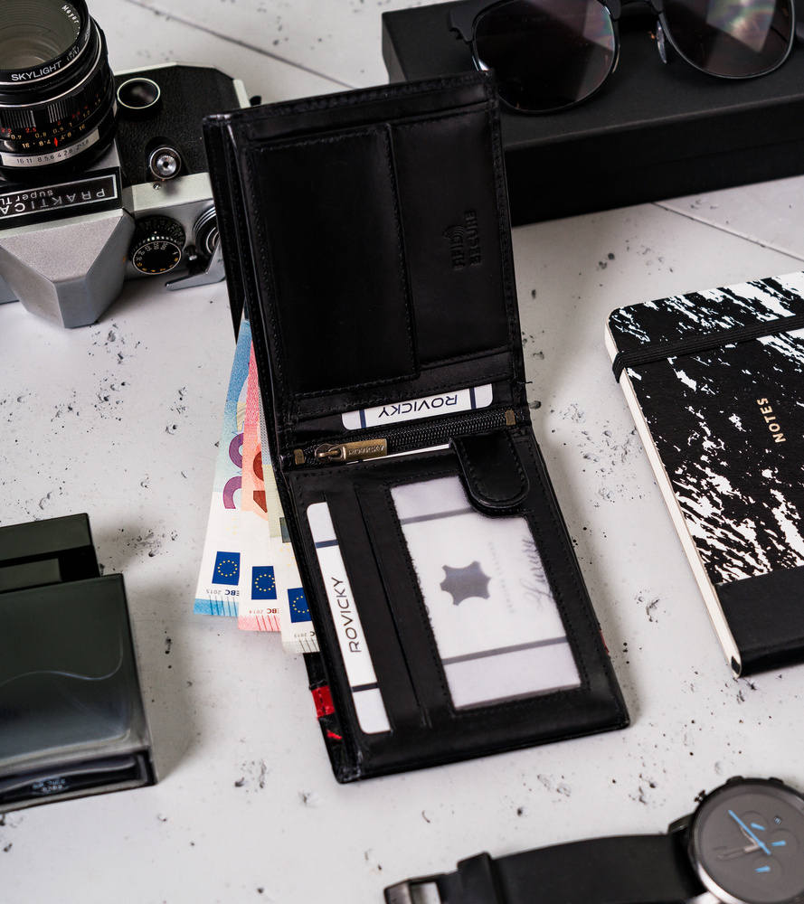 - Bezpieczeństwo na najwyższym poziomie - wspomniana technologia RFID chroni portfel przed złodziejami, używającymi czytników do kart. W każdej chwili, w zatłoczonym autobusie, ktoś może zeskanować dane z Twojej karty debetowej lub kredytowej, a Ty nawet się nie zorientujesz! Na szczęście portfel ma wkładkę, która zapobiega tym przykrym sytuacjom